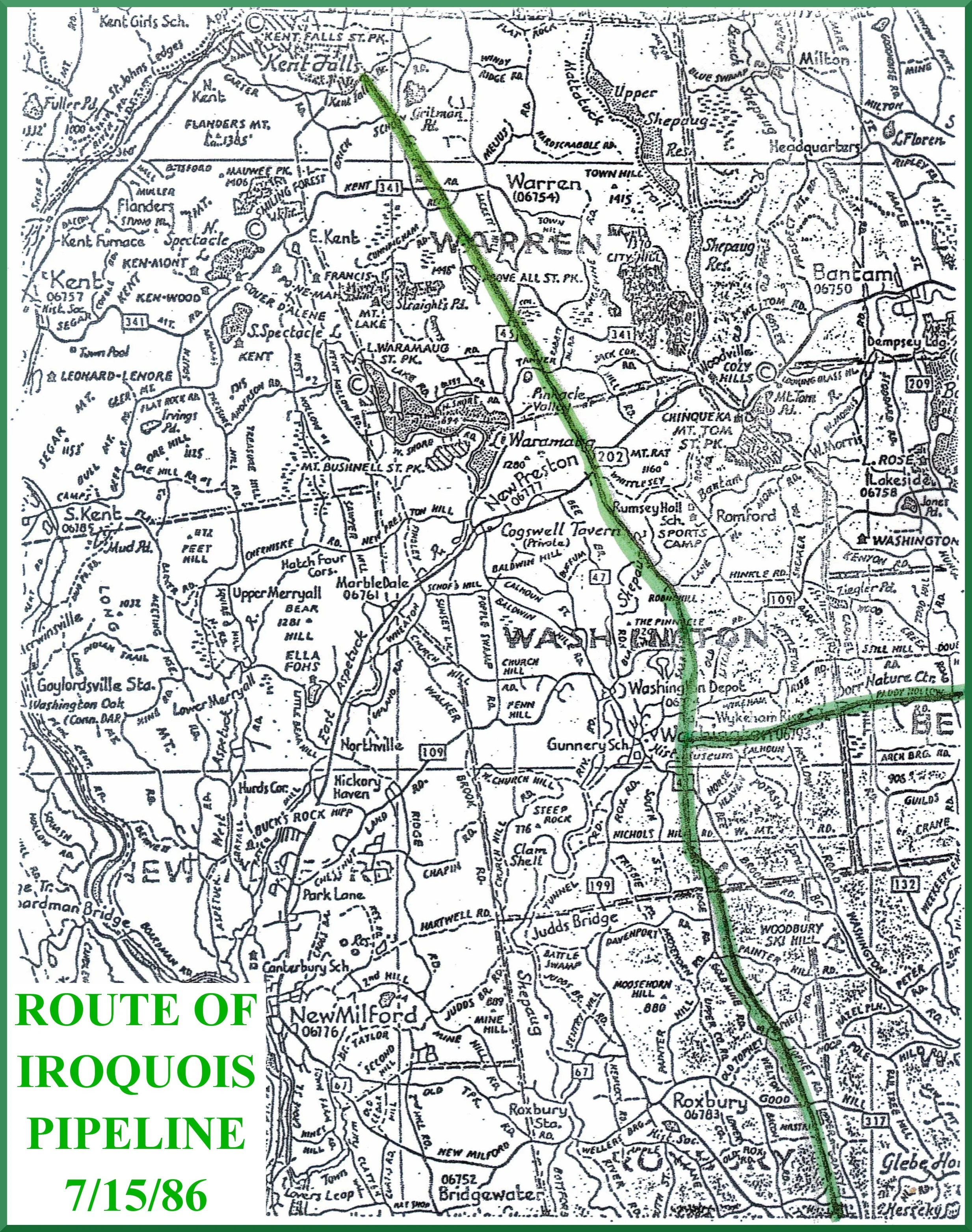 Proposed route of the Iroquois Pipeline. The pipeline would have run through the center of Washington.